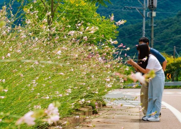[경남도민뉴스] 산청군은 삼장면 국도 59호선 도로변에 가우라꽃이 만개해 여름철 산청을 찾은 방문객들에게 아름다운 경관을 선사하고 있다고 9일 밝혔다.