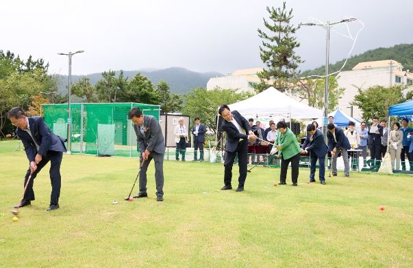 [경남도민뉴스] 통영시는 9일 광도면 안정 시민공원에서 시장, 시의장, 도의원, 지역구 시의원과 통영시 자생단체장 등 통영시민 100여 명이 참석한 가운데 통영시 제1호 파크골프장인 카멜리아 파크골프장 준공식을 가졌다.