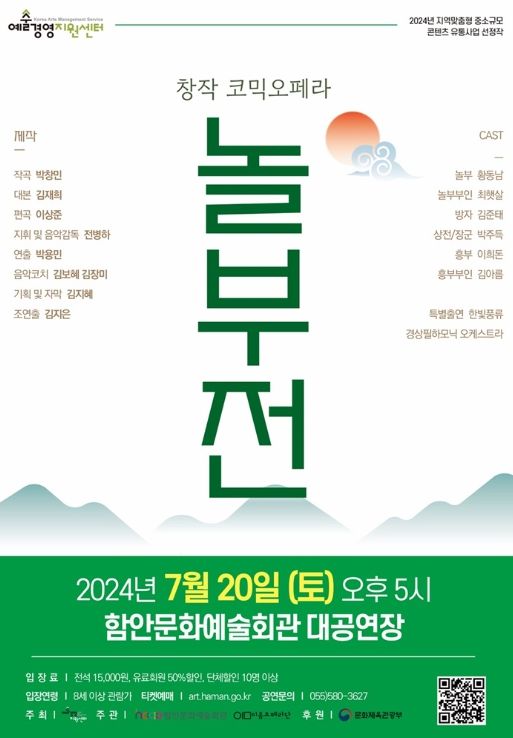 [경남도민뉴스] 창작 코믹오페라 ‘놀부전’ 공연이 오는 20일 오후 5시 함안문화예술회관 대공연장에서 열린다.