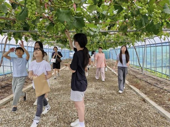 학생들은 온난화대응미래농업관에서 ▲포도 알 솎기 체험 ▲백향과 잎, 줄기, 열매 만져보기 체험 ▲커피 따기 체험 ▲블랙초크베리 수확 체험 ▲아열대식물을 직접 만져보고 기억에 남는 식물을 직접 그려본 후 체험 소감 발표 등 다양한 활동을 즐기며 참여했다.