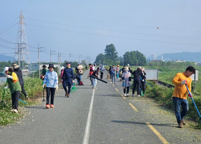 [경남도민뉴스] 밀양시 상남면은 지난 13일 양림간 자전거길에 면 직원, 주민자치위원 등 40여 명이 가우라 꽃길 꽃대 제거 및 환경정비를 실시했다고 밝혔다.