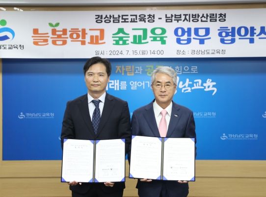 [경남도민뉴스] 경상남도교육청과 남부지방산림청은 15일 경남교육청 중회의실에서 지역사회와 연계해 늘봄학교 ‘숲 교육’ 운영을 활성화하는 업무 협약을 체결했다.