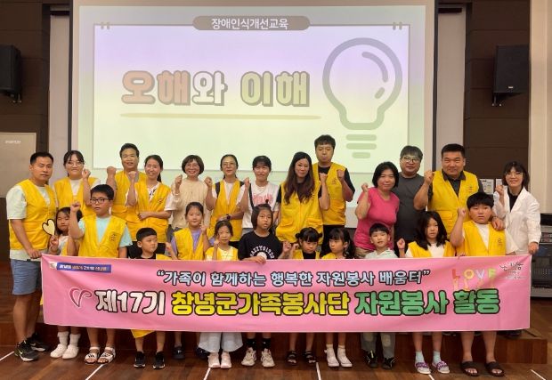 제17기 창녕군가족봉사단은 12가족 45명으로 구성되어 있으며, 매월 1회 가족과 함께 다양한 지역 자원봉사 활동에 참여하고 있다.