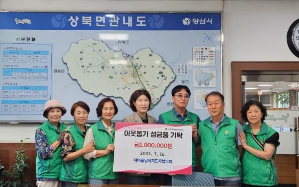 [경남도민뉴스] 양산시 상북면 행정복지센터는 16일 상북면 새마을남녀지도자협의회에서 취약계층을 위한 성금 200만원을 기탁했다고 밝혔다.
