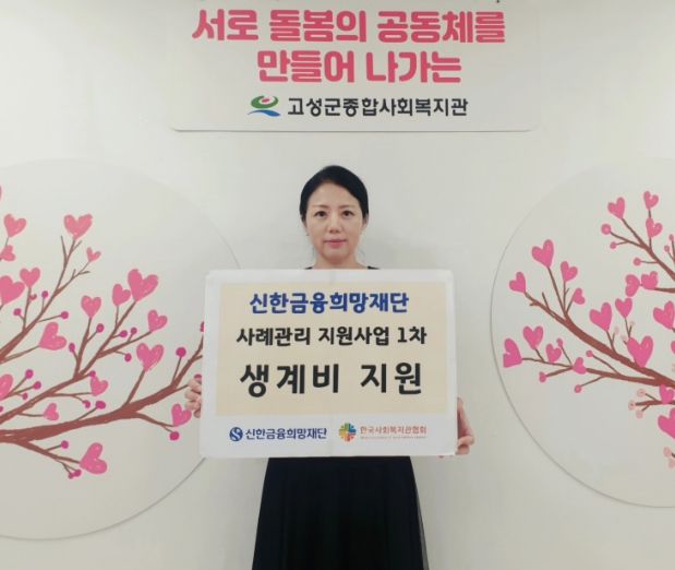 이번 신한금융희망재단 사례관리 지원사업은 신한금융희망재단이 후원(100만 원)하고 한국사회복지관협회 주관하여, 고성군종합사회복지관 사례관리 대상자 중 취약계층 기준중위소득 80% 이하 가구를 대상으로 진행되었다.