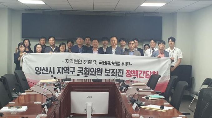 [경남도민뉴스] 양산시는 지난 18일 여의도 국회 의원회관에서 지역 국회의원 보좌진과 주요현안 해결과 내년도 국비 확보에 힘을 모으기 위해 정책간담회를 개최했다.