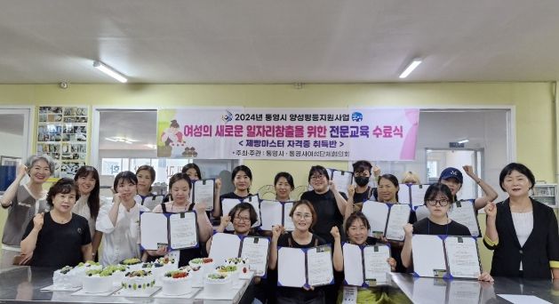 [경남도민뉴스] 통영시여성단체협의회는 지난 17일 통영제과제빵커피전문학원에서 통영시여성단체협의회 임원 및 수강생 등 20여명이 참석한 가운데 ‘여성의 새로운 일자리 창출을 위한 전문교육’인 제빵마스터 교육 수료식을 실시했다.