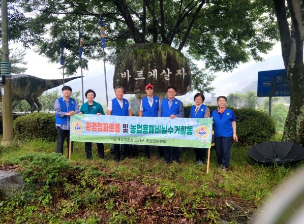 [경남도민뉴스] 고성군 바르게살기운동 개천면위원회는 지난 19일 개천면 명성리 하명마을에 조성된 바르게살기 동산에서 환경정화 및 농업용 폐비닐 수거 활동을 실시했다.