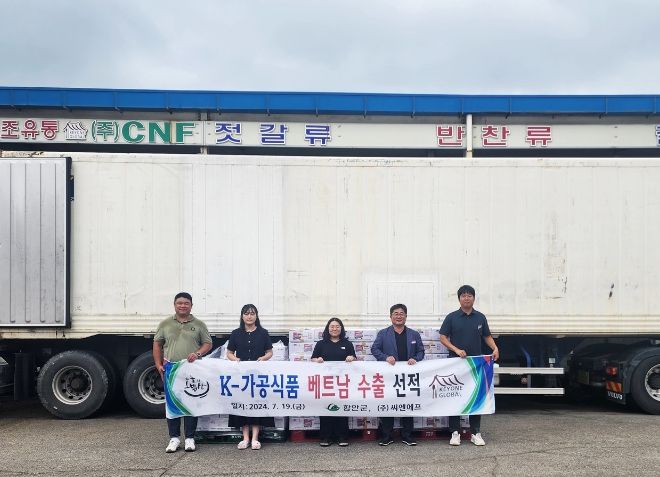 [경남도민뉴스] 함안군은 19일 군북면 소재 ㈜씨엔에프(대표 이기원)에서 K-가공식품 베트남 수출 선적식을 가졌다.