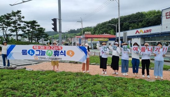 캠페인 참여자들은 단성면 식사재마트 앞에서 홍보 현수막과 피켓을 들고 ‘건강한 여름나기’캠페인 활동을 실시했다.