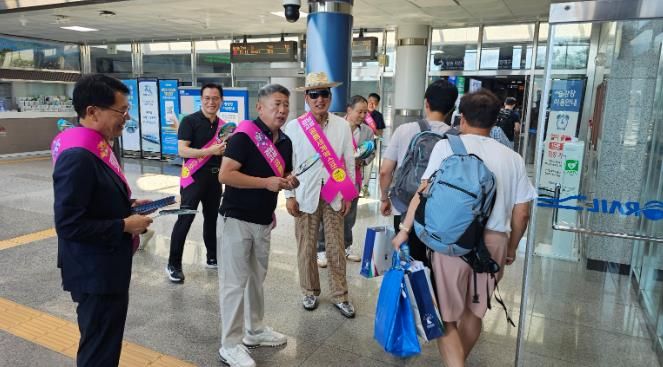 지난 21일, 고성군의 주요 현안 과제를 해결하는 4명의 대외협력관과 고성문화관광재단 및 해당 부서 직원이 역 이용객을 대상으로 행사가 개최되는 고성군 당항포관광지에 방문할 것을 적극적으로 홍보했다.