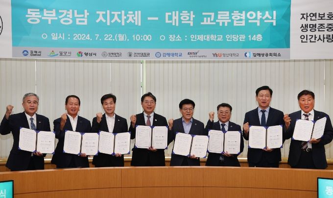 [경남도민뉴스] 밀양시는 22일 인제대학교 인당관에서 동부경남 지자체·대학(김해시, 양산시, 인제대, 가야대, 김해대, 영산대, 동원과학기술대)등 7개 기관과 함께‘동부경남 지자체-대학 협력 및 교류 협약’을 체결했다고 밝혔다.