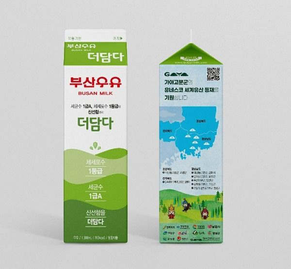 가야 관련 홍보물이 인쇄되는 해당 제품은 ‘부산우유 더담다’와 ‘축협우유’이다. ‘부산우유 더담다’는 대부분 부울경 지역에 유통되는 제품으로 부울경 지역에만 연간 2,300만 개가 팔리고 있으며, 축협우유는 전국 농협 하나로마트를 통해 전국적으로 판매되는 제품으로 연간 판매량이 1,095만 개에 이르는 제품이다.
