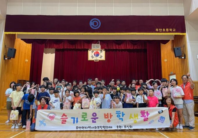 [경남도민뉴스] 밀양시 무안면 지역사회보장협의체는 23일 여름방학을 맞아 무안초등학교 전교생을 대상으로 슬기로운 방학생활 꾸러미 나눔 행사를 가졌다.