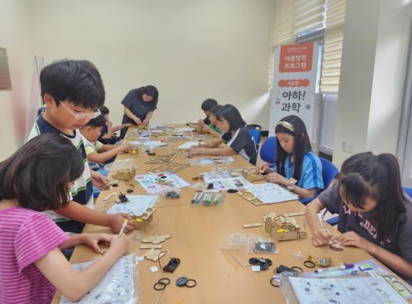 월요일 운영하는 ‘여름엔 아하!과학’은 자율주행자동차, 한지액자, 화학거품, 지시약꽃, 부메랑 등 다양한 체험을 통해 과학적 원리를 배우는 프로그램이다.