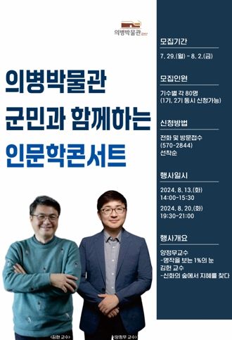 [경남도민뉴스] 의병박물관이 8월 13일과 20일 ‘군민과 함께하는 인문학콘서트’를 개최한다고 밝혔다.