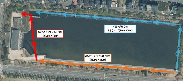 이미 2021년도에 일부 구간의 방류수로 이설공사가 추진되어 일부 불편이 해소되었으나, 나머지 구간에 대한 개선 요구가 계속적으로 제기돼 왔다. 이에 따라 양산시는 자체 검토를 통한 하수처리장 방류수를 빗물펌프장 유수지 일부 구간 매설관로를 통한 하천 직 방류계획으로 총 6.8억원의 예산을 투입해 총 길이 72m, 직경 180cm의 방류수로 개량공사를 2023년 설계를 시작해 준공에 이르게 됐다.