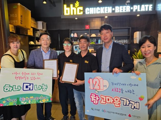 [경남도민뉴스] 고성군지역사회보장협의체는 지난 7월 22일(월)에 ‘비에치씨(BHC)고성점’(대표 황상남)과 함께 지역사회에 나눔을 실천하는 ‘참고마운가게’ 121호점과 ‘하나 더 나눔’ 7호점 협약식을 동시에 가졌다.