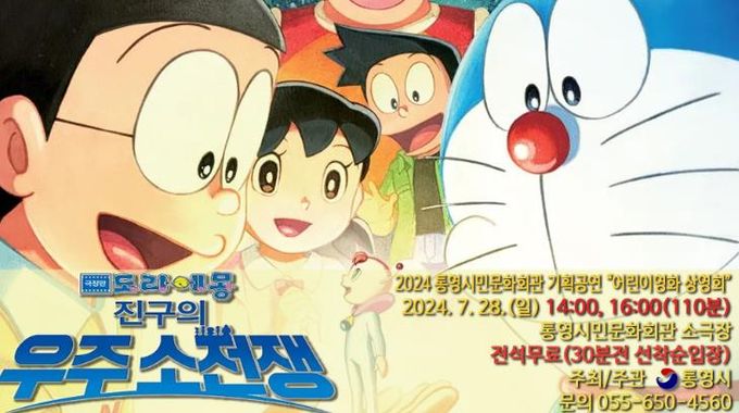 [경남도민뉴스] 통영시에서는 여름방학을 맞이해 어린이를 위한 영화 '도라에몽: 진구의 우주소전쟁'을 오는 28일 오후 2시, 오후 4시에 통영시민문화회관 소극장에서 무료 상영한다고 밝혔다.
