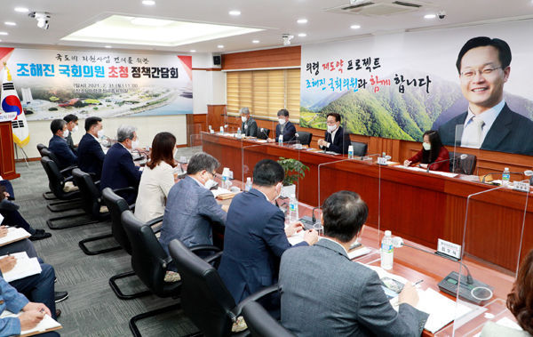 오태완 의령군수는 간담회에 앞서 “코로나19로 위축한 지역경제 활력을 가져오기 위해서는 국비 확보를 통한 신속한 현안사업 추진이 무엇보다 중요하다”며 “소통과 협치를 통해 내년도 사업의 원활한 추진을 도모할 수 있도록 조해진 국회의원을 비롯한 참석자분들의 고견과 적극적인 협력을 부탁드린다”고 당부했다.