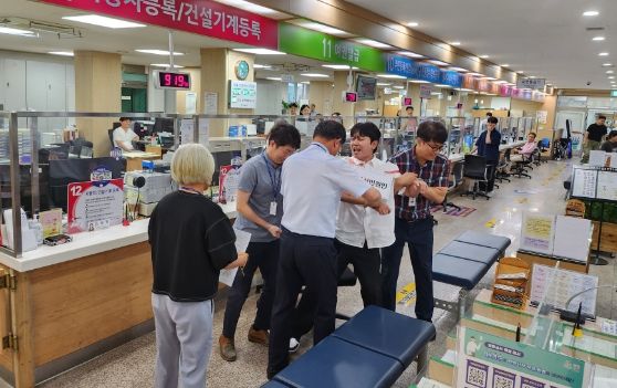 이번 모의훈련은 민원 처리 과정에서 발생하는 폭언·폭행 등 다양한 특이민원 상황에 대한 대처 능력을 향상하고, 민원 담당 공무원 보호 및 안전에 중점을 두고 진행했다.