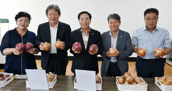 회원들이 생산한 창녕 명품 양파와 경상남도농업기술원 양파연구소에서 개발한 품종 ‘아크네’ 등 4종의 양파가 선보였다.