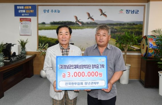 [경남도민뉴스] 창녕군은 지난 24일, 전국한우협회 창녕군지부(지부장 백승창)가 (재)창녕군인재육성장학재단에 300만 원의 장학금을 기탁했다고 밝혔다.