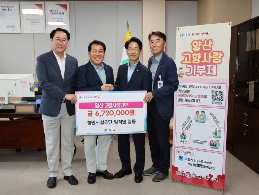 [경남도민뉴스] 양산시는 창원시설공단 임직원 71명이 양산시에 자발적으로 모금한 고향사랑기부금 672만원을 기탁했다고 26일 밝혔다.