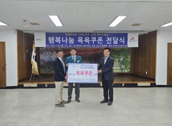 [경남도민뉴스] 진교면사무소는 지난 26일 진교면 로타리클럽과 ㈜토지가 뜻을 모아 취약 가구를 위해 목욕 쿠폰 300장을 기부했다고 밝혔다.