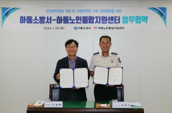 주요 협약 내용은 ▲하동노인통합지원센터 직원 및 안전 취약계층 대상 소방안전교육 지원 ▲주택용 소방시설 설치 홍보 및 지원 ▲세대 내 화재·생활안전 위험 요인 점검 ▲U-119 안심콜 서비스 관련 내용 설명 및 홍보 ▲안전·복지 사각지대 해소를 위한 시책 및 추진 사항 공유 등이다.