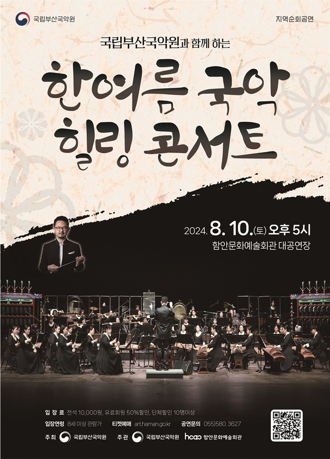[경남도민뉴스] 함안문화예술회관은 오는 8월 10일(토) 오후 5시 함안군 함안문화예술회관 대공연장에서 ‘한여름 국악 힐링 콘서트’를 선보인다.