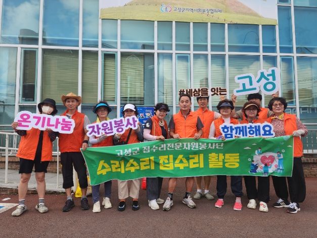 고성군 집수리전문자원봉사단은 올해로 12년째 운영되고 있으며, 그동안 관내 도움이 필요한 81세대에 방문해 주거환경 개선 활동을 했으며 올해는 6가구를 지원했다.