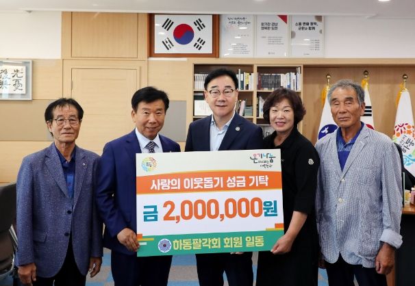 [경남도민뉴스] 하동군은 지난 30일 하동팔각회에서 군수 집무실을 방문해 불우이웃돕기 성금 200만 원을 기부했다고 전했다.