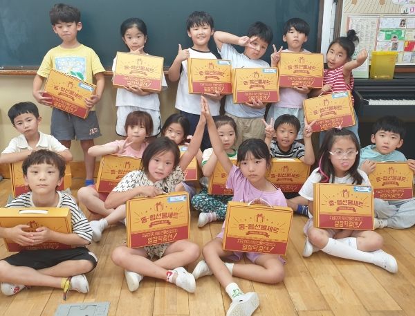 물품 전달은 지난 30일 여름방학식에 맞춰 진행됐으며 학생들은 7월의 크리스마스 선물 같은 과자 꾸러미를 가슴에 안고 신나는 발걸음으로 하교했다.