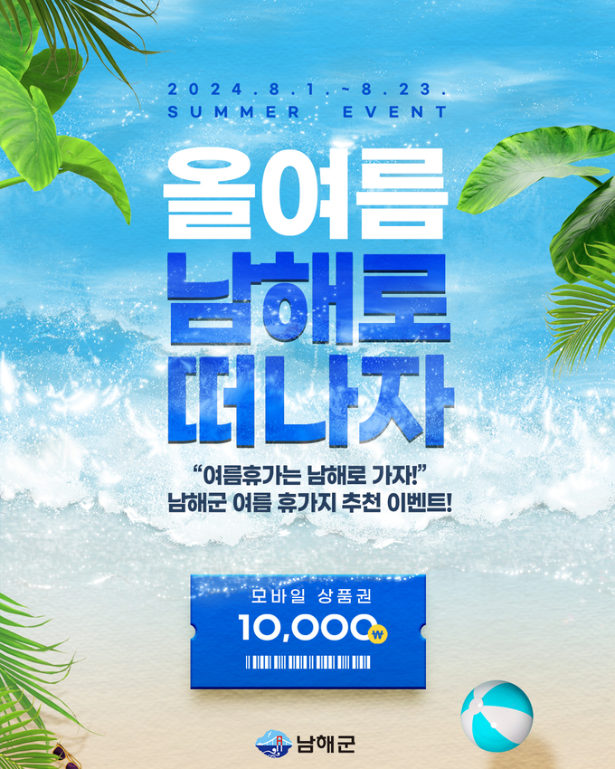 [경남도민뉴스] 남해군은 8월 1일부터 23일까지 남해군 공식 SNS를 통해 ‘여름휴가는 남해로 가자!’ 이벤트를 진행한다고 밝혔다.