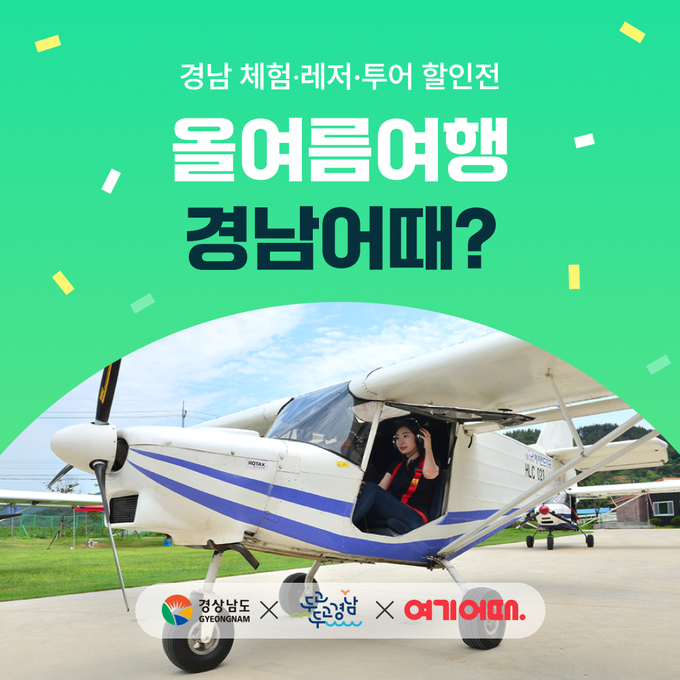 경상남도(도지사 박완수)는 본격적인 여름 휴가철을 맞아 온라인여행플랫폼(여기어때)과 함께 체험·레저·투어 상품 할인 쿠폰 프로모션을 진행하여 휴가철 관광객 유치에 박차를 가하고 있다.