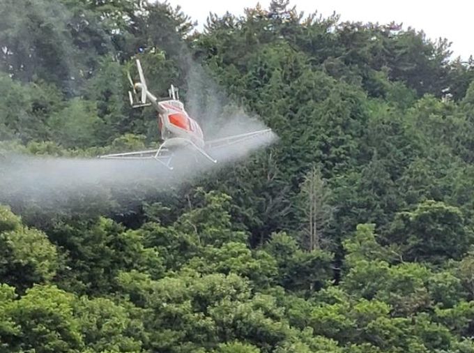 [경남도민뉴스] 고성군 밤생산자단체협의회가 밤생산농가의 밤품질 향상 및 소득증대를 위해 지난 29일부터 30일까지 2일간 고성군 240밤생산농가 250ha에 복숭아 명나방 및 밤바구미 등 종실가해해충 헬기 항공방제를 실시해 방제효과가 크게 나타났다고 밝혔다.