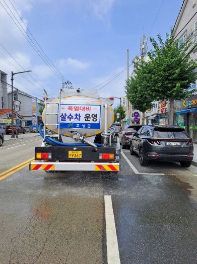 [경남도민뉴스] 고성군은 폭염으로 가마솥더위가 이어지자 8월부터 도심지 간선 도로 위주로 살수차를 운영하는 등 폭염 대응에 총력을 기울이고 있다.