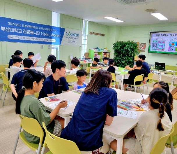 부산대학교 전공봉사단은 전공역량강화와 지역인재양성을 위한 활동으로 디자인을 전공하는 대학생 6명이 고성군돌봄센터1호점 아동을 대상으로 창의적인 디자인 수업을 운영한다.