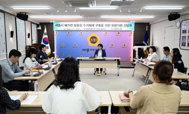 [경남도민뉴스] 세종특별자치시의회 김현옥 의원(새롬동, 산업건설위원회 소속)은 5일 세종시청 및 E-순환 거버넌스, 공동주택관리사 협회 그리고 세종시 아파트 입주자대표 연합회 관계자가 참석한 가운데 ‘중·소형 폐가전 맞춤형 수거 체계 구축을 위한 유관기관 간담회’를 개최했다.