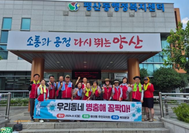 [경남도민뉴스] 양산시 평산동 주민자치회는 지난 5일 평산음악공원 등 5개 공원과 먹자골목 일원에 방역소독 및 환경정비를 실시했다.