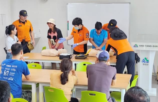 [경남도민뉴스] 함양군은 8월 6일 오후 외국인 계절근로자 35명을 대상으로 함양소방서와 합동 소방훈련을 진행했다.