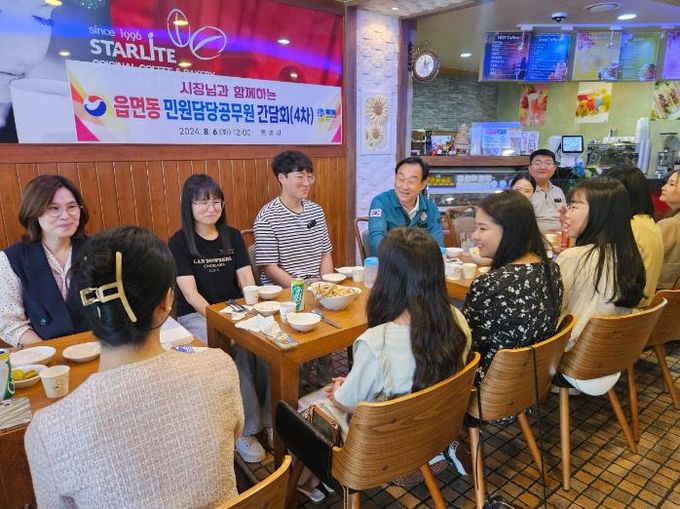 읍면동 직원들은 시장님과 점심 식사를 함께하며 자유로운 분위기 속에서 민원업무 처리에 따른 고충에 대해 이야기를 나눴으며, 민원담당 공무원의 보호 시책, 민원서비스 업무 개선을 위한 의견, 근무환경 개선 건의 등 다양한 주제로 소통의 시간을 가졌다.