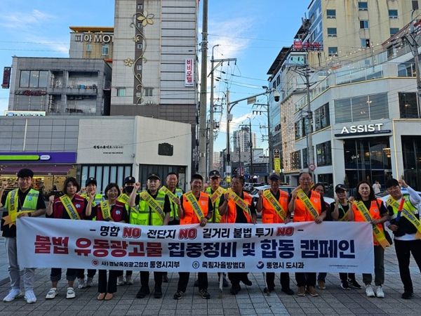 [경남도민뉴스] 통영시는 여름휴가철과 더불어 제63회 한산대첩축제를 대비해 (사)경상남도옥외광고협회 통영시지부, 죽림자율방범대와 합동으로 불법 옥외광고물 집중정비 및 합동 캠페인을 실시했다.