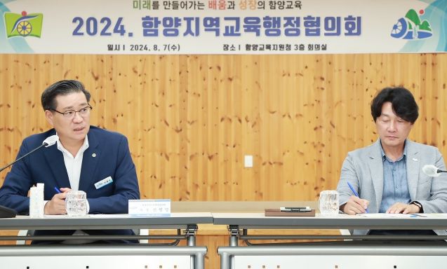 [경남도민뉴스] 함양군과 함양교육지원청은 7일 오후 교육지원청 3층 대회의실에서 지역 교육 현안을 논의하기 위한 ‘2024년 함양지역교육행정협의회’를 개최했다.
