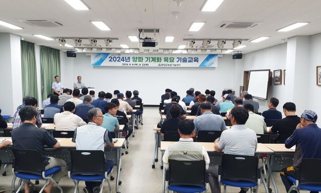 [경남도민뉴스] 함양군은 8일 오후 농업기술센터 회의실에서 관내 양파 재배 농가 50여 명을 대상으로 양파 기계화 육묘 기술 교육을 진행했다.