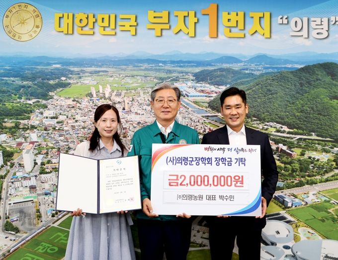 [경남도민뉴스] 의령군 지정면 소재 농업법인 ㈜의령농원 박수민 대표는 지난 7일 의령군청을 방문하여 의령군 교육 발전을 위해 의령군장학회에 장학금 200만원을 기탁했다.
