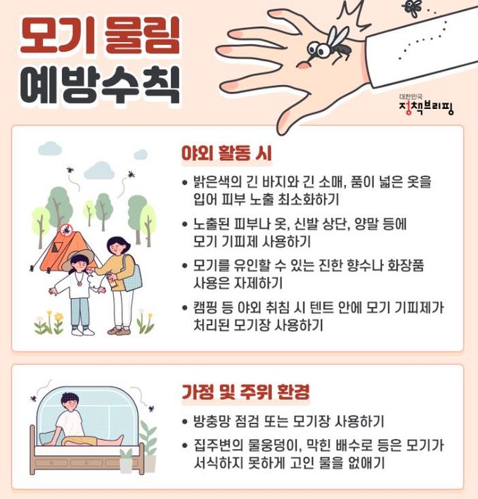 군민들에게는 모기매개 감염병에 대한 위험성과 예방수칙인 △모기 활동이 활발한 4월부터 10월 야간활동 자제 △외출 시 밝은색의 긴 옷 착용 △모기 기피제와 모기장 사용 △방충망 점검 등을 적극 홍보하고 있다.