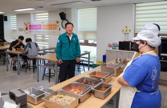 조근제 함안군수는 12일 해당 사업이 시행되고 있는 함안군청소년수련관을 찾아 아동·청소년들이 점심을 먹는 모습을 살펴보며 종사자들을 격려하고 운영현황을 세심히 살폈다.