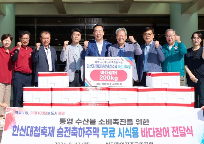 이날 전달된 200kg의 바다장어는 오는 14일 무전대로에서 진행되는 제63회 통영한산대첩축제 승전축하주막에서 맛깔스러운 요리로 탄생하여 더운 여름철 시민들과 관광객의 입맛을 사로잡을 예정이다.